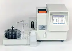 Flame photometry is a type of atomic emission spectroscopy. It is also known as flame emission spectroscopy.[1][2] A photoelectric flame photometer is an instrument used in inorganic chemical analysis to determine the concentration of certain metal ions, among them sodium, potassium, lithium, and calcium.[3] Group 1 (alkali metals) and Group 2 (alkaline earth metals) are quite sensitive to flame photometry due to their low excitation energies.