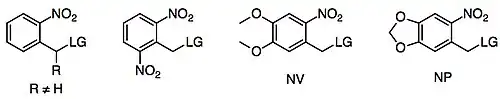 A photolabile protecting group (PPG; also known as: photoremovable, photosensitive, or photocleavable protecting group) is a chemical modification to a molecule that can be removed with light. PPGs enable high degrees of chemoselectivity as they allow researchers to control spatial, temporal and concentration variables with light. Control of these variables is valuable as it enables multiple PPG applications, including orthogonality in systems with multiple protecting groups. As the removal of a PPG does not require chemical reagents, the photocleavage of a PPG is often referred to as "traceless reagent processes", and is often used in biological model systems and multistep organic syntheses.[1][2][3] Since their introduction in 1962,[4] numerous PPGs have been developed and utilized in a variety of wide-ranging applications from protein science[5] to photoresists. Due to the large number of reported protecting groups, PPGs are often categorized by their major functional group(s); three of the most common classifications are detailed below.