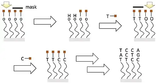 54. 1 2 Fodor, S. P.; Read, J. L.; Orrung, M. C.; Stryer, L.; Lu, A. T.; Solas, D. (1991). "Light-Directed, Spatially Addressable Parallel Chemical Synthesis". Science. 251 (4995): 767–773. Bibcode:1991Sci...251..767F. doi:10.1126/science.1990438. PMID 1990438.