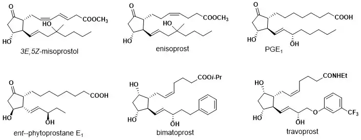 An important use of the Piancatelli rearrangement that was studied by Piancatelli himself is the synthesis of prostaglandins and their derivatives. Piancatelli was able to synthesize key intermediates for the preparation of prostanoic acid starting from his 2-furylcarbinols bearing a second functional group. This study was able to demonstrate the versatility of the sequence of the rearrangement.
