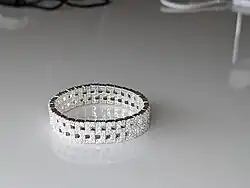 Rhodium plating is occasionally used on white gold, silver or copper and its alloys. A barrier layer of nickel is usually deposited on silver first, though in this case it is not to prevent migration of silver through rhodium, but to prevent contamination of the rhodium bath with silver and copper, which slightly dissolve in the sulfuric acid usually present in the bath composition.[4]