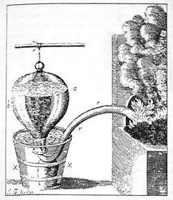 While not credited for direct research into the field of pneumatic chemistry, Boerhaave (teacher, researcher, and scholar) did publish the Elementa Chimiae in 1727. This treatise included support for Hales' work and also elaborated upon the idea of airs. Despite not publishing his own research, this section on airs in the Elementa Chimiae was cited by many other contemporaries and contained much of the current knowledge of the properties of airs.[19] Boerhaave is also credited with adding to the world of chemical thermometry through his work with Daniel Fahrenheit, also discussed in Elementa Chimiae.[20]