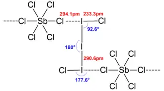 | [ICl2]+ | ICl3 + SbCl5 → [ICl2]+[SbCl6]− | |