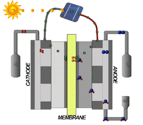 Conductive polymer membranes are a growing area of application for polymer electrolytes. These membranes generally require high ionic conductivity, low permeability, thermal and hydrolytic stability, and morphological and mechanical stability.[7][10] An example of membranes made from conductive polymer selective barriers in multifunctional micelles.[10] Fuel cell applications of polymer electrolytes typically employ perfluorosulfonic acid membranes capable of selective proton conduction from the anode to the cathode. Such fuel cells are able to generate electrical energy from hydrogen or methanol fuels.[7] However, current conductive polymer membranes are limited by requiring humidification, and the face durability issues related to their mechanical properties.[7][10] The presence of a polymer electrolyte, particularly one that is solid-state enables reduction in device thickness and shorter mass transport distances which contribute to an overall enhanced cell efficiency over devices with other electrolytes.[28]