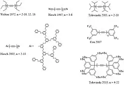 - 1 2 3 Gibtner, Thomas; Hampel, Frank; Gisselbrecht, Jean-Paul; Hirsch, Andreas (2002). "End-cap stabilized oligoynes: Model compounds for the linear sp carbon allotrope carbyne". Chemistry: A European Journal. 8 (2): 408–432. doi:10.1002/1521-3765(20020118)8:2<408::AID-CHEM408>3.0.CO;2-L. PMID 11843154.