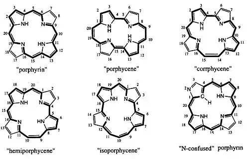 Various reported Isomers of porphyrin