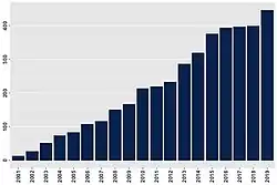 Innovative algorithms and new approaches to electronic structure have been enabling cutting-edge scientific discoveries. This transition, from in-house code to major electronic structure engine, has become possible due to contributions from numerous scientific collaborators; the Q-Chem business model encourages broad developer participation. Q-Chem defines its genre as open-teamware:[8] its source code is open to a large group of developers. In addition, some Q-Chem modules are distributed as open source.[8] Since 1992, over 400 man- (and woman-) years have been devoted to code development. Q-Chem 5.2.2, released in December 2019, consists of 7.5 million lines of code, which includes contributions by more than 300 active developers (current estimate is 312).[6][8] See Figure 3.