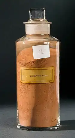 Quercitron is a yellow natural dye obtained from the bark of the Eastern Black Oak (Quercus velutina), a forest tree indigenous in North America. It was formerly called Dutch pink, English pink, or Italian pink.[1]