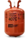R-407C is a mixture of hydrofluorocarbons used as a refrigerant. It is a zeotropic blend of difluoromethane (R-32), pentafluoroethane (R-125), and 1,1,1,2-tetrafluoroethane (R-134a). Difluoromethane serves to provide the heat capacity, pentafluoroethane decreases flammability, tetrafluoroethane reduces pressure.[1] R-407C cylinders are colored burnt orange.
