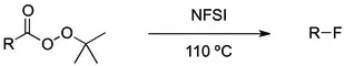The thermolysis of t-butyl peresters has been used to generate alkyl radicals in presence of NFSI and Selectfluor.[3] The radicals' intermediates were efficiently fluorinated, demonstrating the ability of the two electrophilic fluorinating agents to transfer fluorine to alkyl radicals.