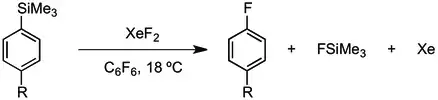 XeF2 can also be used to generate aryl radicals from arylsilanes, and act as an atomic fluorine source to furnish aryl fluorides.[14]