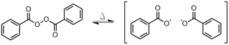 - The initiator is heated until a bond is homolytically cleaved, producing two radicals (Figure 1). This method is used most often with organic peroxides or azo compounds.[2]