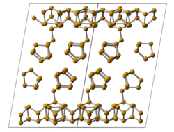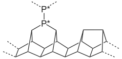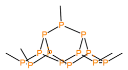 Hittorf's phosphorus, or violet phosphorus, is one of the crystalline forms of red phosphorus.[20][7] It adopts the following structure: