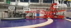 Since the spectral analysis of the scattered X-rays is done through a dispersive grating, longer spectrometers offer higher resolving power. State of the art spectrometers are more than ten meters long, more than five times the dimensions of the pioneering ones. Two examples from ESRF and DLS are in the figures.[14][15][16]
