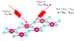 Comparing the energy of a neutron, electron or photon with a wavelength of the order of the relevant length scale in a solid - as given by the de Broglie equation considering the interatomic lattice spacing is in the order of Ångströms - it derives from the relativistic energy–momentum relation that an X-ray photon has more energy than a neutron or electron. The scattering phase space (the range of energies and momenta that can be transferred in a scattering event) of X-rays is therefore without equal. In particular, high-energy X-rays carry a momentum that is comparable to the inverse lattice spacing of typical condensed matter systems so that, unlike Raman scattering experiments with visible or infrared light, RIXS can probe the full dispersion of low energy excitations in solids.[1][2][3]