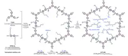 - ↑ Liu, Yuzhong; Ma, Yanhang; Zhao, Yingbo; Sun, Xixi; Gándara, Felipe; Furukawa, Hiroyasu; Liu, Zheng; Zhu, Hanyu; Zhu, Chenhui; Suenaga, Kazutomo; Oleynikov, Peter; Alshammari, Ahmad S.; Zhang, Xiang; Terasaki, Osamu; Yaghi, Omar M. (2016-01-22). "Weaving of organic threads into a crystalline covalent organic framework". Science. 351 (6271): 365–369. Bibcode:2016Sci...351..365L. doi:10.1126/science.aad4011. PMID 26798010.