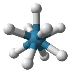 A distinctive derivative of rhenium is nonahydridorhenate, originally thought to be the rhenide anion, Re−, but actually containing the ReH2−