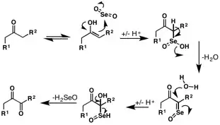 {{cite journal}}: CS1 maint: multiple names: authors list (link); Collected Volumes, vol. 4, p. 229. - ↑ Młochowski, Jacek; Brząszcz, Monika; Giurg, Mirosław; Palus, Jerzy; Wójtowicz, Halina (November 2003). "Selenium-Promoted Oxidation of Organic Compounds: Reactions and Mechanisms". European Journal of Organic Chemistry. 2003 (22): 4329–4339. doi:10.1002/ejoc.200300230.