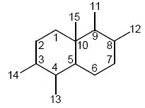 Bicycloalkanes are alkanes containing two rings that are connected to each other by sharing two carbon atoms. Orientation within bicycloalkanes is dependent on the cis or trans orientation of the hydrogen shared by the different rings instead of the methyl groups present in the rings.[7]