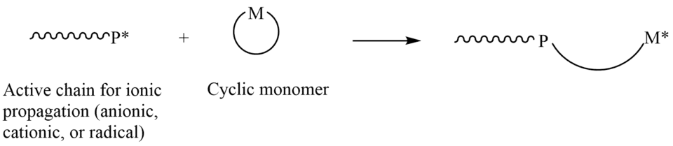 In polymer chemistry, ring-opening polymerization (ROP) is a form of chain-growth polymerization in which the terminus of a polymer chain attacks cyclic monomers to form a longer polymer (see figure). The reactive center can be radical, anionic or cationic.