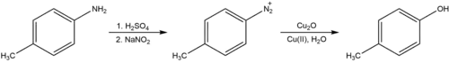 - ↑ Cohen, Theodore; Dietz, Albert G.; Miser, Jane R. (1977-06-01). "A simple preparation of phenols from diazonium ions via the generation and oxidation of aryl radicals by copper salts". The Journal of Organic Chemistry. 42 (12): 2053–2058. doi:10.1021/jo00432a003. ISSN 0022-3263.