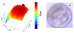 The technique is complementary to other surface characterization methods such as surface plasmon resonance (SPR),[8] electrochemical scanning tunneling microscopy (ESTM),[9] and atomic force microscopy (AFM)[10] in the interrogation of various interfacial phenomena. In addition to yielding topographic information, SECM is often used to probe the surface reactivity of solid-state materials, electrocatalyst materials, enzymes and other biophysical systems.[11] SECM and variations of the technique have also found use in microfabrication, surface patterning, and microstructuring.[12]