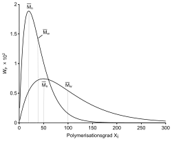 The Flory–Schulz distribution is a discrete probability distribution named after Paul Flory and Günter Victor Schulz that describes the relative ratios of polymers of different length that occur in an ideal step-growth polymerization process. The probability mass function (pmf) for the mass fraction of chains of length is: