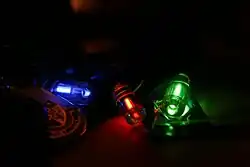 Tritium lights or beta lights were formerly used in fishing lures. Some flashlights have slots for tritium vials so that the flashlight can be easily located in the dark.