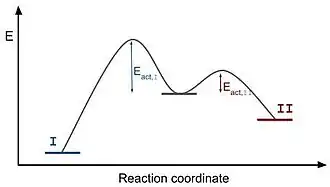 The activation energy for the thermodynamic product is higher than the activation energy for the kinetic product. From the Arrhenius equation with the reaction rate, a constant, the activation energy, the Boltzmann constant and the temperature, follows that for overcoming a higher activation energy barrier, a higher temperature is needed. The thermodynamic regime is therefore associated with high temperature conditions.
