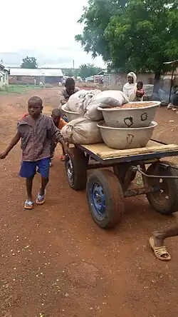 The English word "shea" comes from sǐ, the tree's name in Bambara.[6] It is known by many local names, such as kpakahili in the Dagbani language, taama in the Wali language, nkuto in Twi, kaɗe or kaɗanya in Hausa, òkwùmá in the Igbo language, òrí in the Yoruba language, and karité in the Wolof language of Senegal.[7] It is also known as Moo-yaa in the Acholi language.[8]