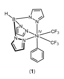 Klein et al. computationally analyzed the electronic structure of a high valent Nickel complex "1".[7] This complex was previously reported to readily undergo aryl-CF3 bond-forming reductive elimination.[6]