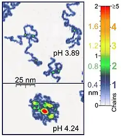 - 1 2 Roiter V, Minko S (2005). "AFM Single Molecule Experiments at the Solid-Liquid Interface: In Situ Conformation of Adsorbed Flexible Polyelectrolyte Chains". Journal of the American Chemical Society. 127 (45): 15688–15689. doi:10.1021/ja0558239. PMID 16277495.