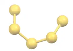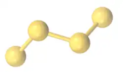The polysulfide anions form chains with S---S bond distances around 2 Å in length. The chains adopt skewed conformations. In the solid state, these salts are dense solids with strong association of the sodium cations with the anionic termini of the chains.[3]