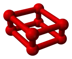 | Ball-and-stick model of O8 | Part of the crystal structure of ε-oxygen |