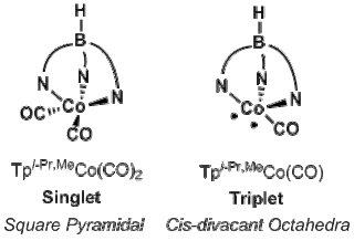 Cobalt(I) dicarbonyl complexes of a trispyrazolylborate are diamagnetic. The corresponding monocarbonyls have triplet ground states.