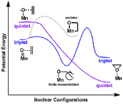 Strong spin-orbital coupling can satisfy the 2nd condition. Parameter 1, however, can lead to very slow reactions due to large disparities between the metal complex's potential energy surfaces, which only cross at high energy leading to a substantial activation barrier.[4]
