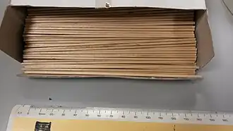 A splint (or spill or splinter) is a simple piece of equipment used in scientific laboratories. Splints are typically long, thin strips of wood, about 6 inches (15 cm) long and ¼ inch (6 mm) wide, and are consumable but inexpensive. They are typically used for tasks such as lighting bunsen burners, as the length of the splint allows a flame to be lit without risk to the user's hand, should the burner flare back. Another use for splints are chemical identification of various gases, and splints are also used to teach simple chemical principles in schools and homes.