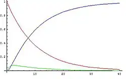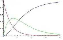 The analytical solutions for these equations (supposing that initial concentrations of every substance except for A are zero) are:[2]