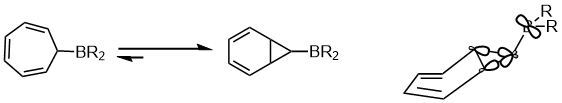 - ↑ Gridnev, Ilya D.; Tok, Oleg L.; Gridneva, Natalya A.; Bubnov, Yuri N.; Schreiner, Peter R. (1998). "Synthesis and Dynamic Properties of Cycloheptatrienyl(dipropyl)borane. Equilibrium with 7-Dipropylborylnorcaradiene". Journal of the American Chemical Society. 120 (5): 1034–1043. Bibcode:1998JAChS.120.1034G. doi:10.1021/ja9724699. ISSN 0002-7863.