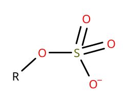 In organosulfur chemistry, organosulfates are a class of organic compounds sharing a common functional group with the structure R−O−SO3. The SO4 core is a sulfate group and the R group is any organic residue. All organosulfates are formally esters derived from alcohols and sulfuric acid (H2SO4) although many are not prepared in this way. Many sulfate esters are used in detergents, and some are useful reagents. Alkyl sulfates consist of a hydrophobic hydrocarbon chain, a polar sulfate group (containing an anion) and either a cation or amine to neutralize the sulfate group. Examples include: sodium lauryl sulfate (also known as sulfuric acid mono dodecyl ester sodium salt) and related potassium and ammonium salts.