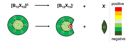 - ↑ Warneke, Jonas; Hou, Gao-Lei; Aprà, Edoardo; Jenne, Carsten; Yang, Zheng; Qin, Zhengbo; Kowalski, Karol; Wang, Xue-Bin; Xantheas, Sotiris S. (2017-10-18). "Electronic Structure and Stability of [B12X12]2– (X = F–At): A Combined Photoelectron Spectroscopic and Theoretical Study". Journal of the American Chemical Society. 139 (41): 14749–14756. Bibcode:2017JAChS.13914749W. doi:10.1021/jacs.7b08598. ISSN 0002-7863. PMID 28933868.