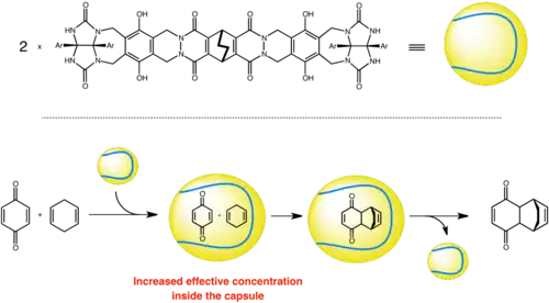 - 1 2 Rebek, J. Jr; Kang, J. (1997). "Acceleration of a Diels–Alder Reaction by a Self-Assembled Molecular Capsule". Nature. 385 (661): 50–52. Bibcode:1997Natur.385...50K. doi:10.1038/385050a0. PMID 8985245. S2CID 4361080.