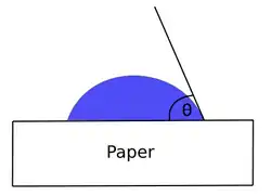 The Young's equation can be used to calculate the surface energy of a liquid on paper. Young's equation is: