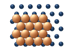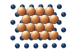 ![]() Figure 4. Model of an atomic exchange mechanism occurring between an adatom (pink) and surface atom (silver) at a square surface lattice (blue). The surface atom becomes an adatom. Not to scale on a spatial or temporal basis. |