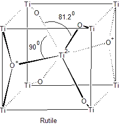 The majority of transition metal dioxides (MO2) have the rutile structure, seen to the right. Materials of this stoichiometry exist for Ti, Cr, V and Mn in the first row transition metal and for Zr to Pd in the second. The rutile structure is generated by filling half of the octahedral sites with cations of the hcp oxygen anion array.[5][6]