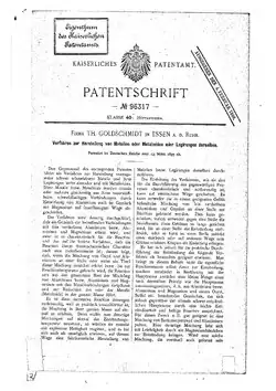 - ↑ Goldschmidt, H. (13 March 1895) "Verfahren zur Herstellung von Metallen oder Metalloiden oder Legierungen derselben" (Process for the production of metals or metalloids or alloys of the same), Deutsche Reichs Patent no. 96317.