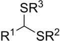 - ↑ IUPAC, Compendium of Chemical Terminology, 2nd ed. (the "Gold Book") (1997). Online corrected version: (2006–) "thioacetals". doi:10.1351/goldbook.T06348