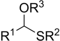 In organosulfur chemistry, thioacetals are the sulfur (thio-) analogues of acetals (R−CH(−OR)2). There are two classes: the less-common monothioacetals, with the formula R−CH(−OR')−SR", and the dithioacetals, with the formula R−CH(−SR')2 (symmetric dithioacetals) or R−CH(−SR')−SR" (asymmetric dithioacetals).[1]