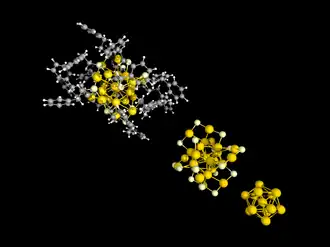 Thiolate-protected gold clusters are a type of ligand-protected metal cluster, synthesized from gold ions and thin layer compounds that play a special role in cluster physics because of their unique stability and electronic properties. They are considered to be stable compounds.[1]