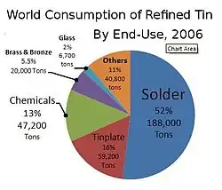 {{cite book}}: ISBN / Date incompatibility (help) - ↑ Panel On Tin, National Research Council (U.S.). Committee on Technical Aspects of Critical and Strategic Materials (1970). Trends in the use of tin. pp. 10–22. Archived from the original on 2016-05-22.